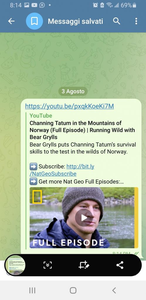 Una caratteristica molto interessante di Telegram è che la piattaforma dispone di un player interno. Questo vi dà la possibilità di accedere a una sorta di browser all’interno dell’app stessa, permettendo all’utente di collegarsi al sito web ufficiale, dove verrà caricato il video.