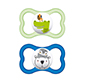 Il pack che potrai acquistare contiene due ciucci, uno blu e uno verde, adatti a un maschietto. La confezione di plastica dura la potrai usare per sterilizzarli nel forno a microonde. Sarà davvero semplice, ti basterà seguire le istruzioni contenute all’interno del pack.