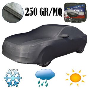 - Lo strato esterno è impermeabile al 100% e impedisce all’acqua di entrare in contatto con l’auto