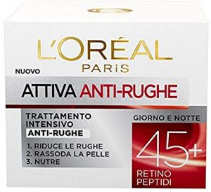 3. L’Oréal Paris Active antirughe 45+ – Migliore crema per il viso con peptidi economica