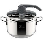 - Adatto a tutte le fonti di calore: è costituita da una base Lagoplan a tre strati in acciaio e alluminio di grosso spessore e della miglior qualità. Pertanto, la pentola è adatta a tutte le fonti di calore, compresa l’induzione, e consente una distribuzione uniforme della temperatura. Questo favorisce anche la conservazione delle vitamine e dei sapori nel cibo.