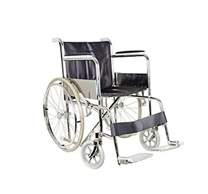 - Sedia a rotelle molto resistente realizzata in acciaio cromato