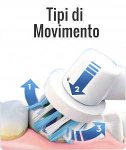 Questo modello è uno dei migliori spazzolini elettrici in circolazione, secondo il parere di molti clienti. Essendo dotato di una testina rotonda come quelle usate dai dentisti, con i suoi movimenti combinati permette una pulizia perfetta di denti e gengive senza affaticare troppo queste ultime.